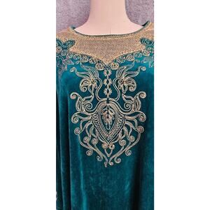 Turkish 100% Cotton VELVET Robe Dress KAFTAN Emerald Green Metallic Gold Emb XXL