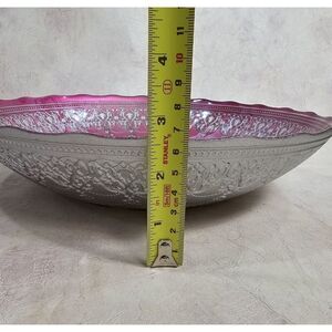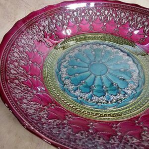 Turkish 12" D Mehendi Silver Purple Aqua Scroll Medallion Painted Glass Bowl