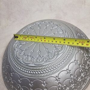 Turkish Mehendi Silver Purple Aqua Scroll Medallion Painted Glass Bowl 12” Centerpiece in very good condition