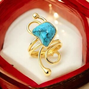 🆕️Turkish Artisan 18K Gold Plated Brass Adjustable Turquoise Cocktail Ring