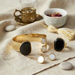 Turkish Jewelry, 18K Gold Plated Bracelet, Black Cat’s Eye Ring, Glass Pearl Earrings, Istanbul Jewelry Design, Handmade Boho Jewelry, Artisan Crafted Ring, Turkish Gemstone Jewelry, Bohemian Jewelry Set, Adjustable Gold Ring, Fashionable Jewelry, Black Stone Fashion Jewelry, Statement Jewelry Set, Trendy Turkish Jewelry, Gold Plated Adjustable Bracelet, Unique Artisan Jewelry, Luxury Jewelry from Turkey, Women's Fashion Jewelry, Turkish Jewelry Collection, Black Gemstone Accessories, Boho Chic Bracelet, Designer Turkish Ring, Istanbul Handcrafted Fashion, Turkish Jewelry, Made In Turkey, Turkey Jewelry, Turkey Statement Jewelry, Turkish Set, Turkey jewelry
