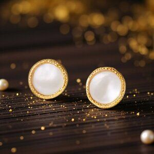 🔸 Coordinated stud earrings with elegant white glass pearl inlay