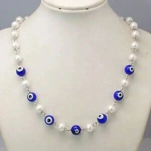 Turkish Evil Eye Beads Talisman Protective Pearl Necklace