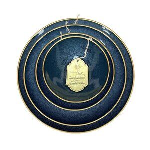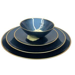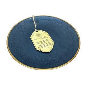 Turkish Glass 4 Salad Dessert Plates Set Blue Texture Gold Rim 8.25" NWT