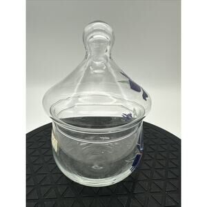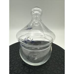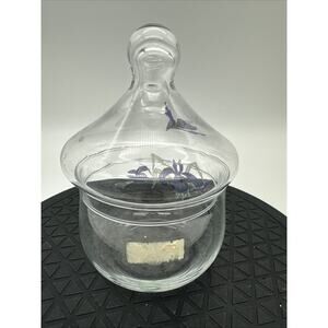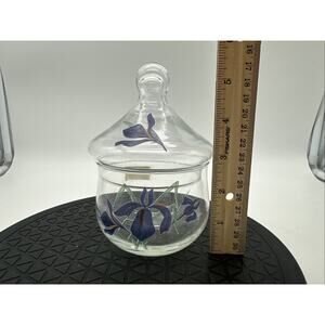 Turkish Handcrafted Crystal Clear Purple Bearded Iris Floral Lidded Candy Dish