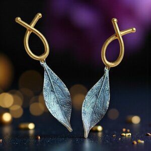 🆕Turkish Handmade 18K Gold Leaf Dangle Earrings Boho Chic Artisan Jewelry