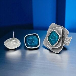 Hi dear Posher! π Discover this stunning Turkish handcrafted jewelry set made from premium Zamak by skilled artisans in Istanbul. This unique set includes a beautiful cuff bracelet, square-shaped stud earrings, and an adjustable ring that fits sizes 7 to 9 comfortably. Its striking deep blue stone accents give off a vibrant yet elegant touch, perfect for both casual and formal outfits. The set is lightweight, stylish, and adds a touch of sophistication to any look. π¨β¨