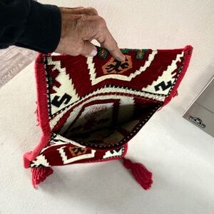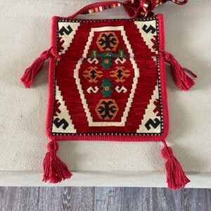Turkish kilim style multi color embroidered with tassels boho crossbody bag tote