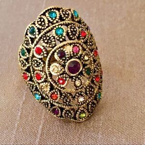 Turkish Multi Color Crystal Statement Cocktail Ring is a large, eye catching, multi colored crystal ring