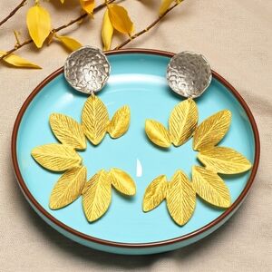 Embrace a truly unique experience: handmade two-toned 18K gold plated brass earrings, crafted by expert hands in Turkey and featuring a beautiful and distinct golden leaves design. These earrings embody sophistication and exclusivity, a look only enhanced by their pin-pierced tops. Enjoy luxury and elegance with this handmade exclusive earrings.