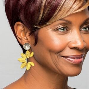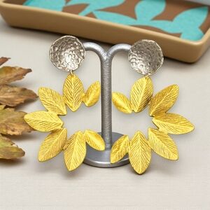 🆕️Turkish Stunning Handmade Artisan 18K Gold Plated Brass Fine Leaf Earrings