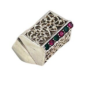 Turkish Vintage Filigree Ring With Ruby and Emerald Stones Size 4.5