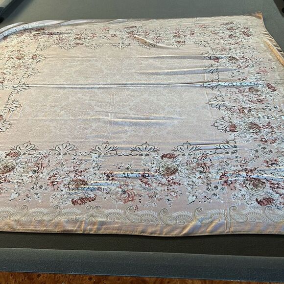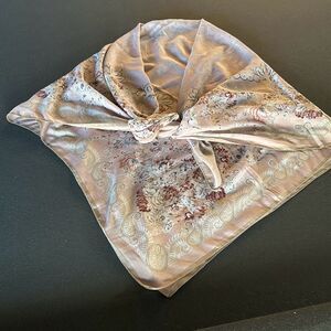 Beautiful scarf made in turkey. Tag doesn’t have fabric information. Soft, pink, gray, and white. 45“ x 45”.