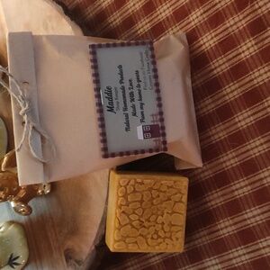 Homemade tea tree soap with turmeric.