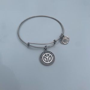 Alex and Ani — silver Turn Peace Up bangle bracelet. Has minor, unnoticeable tarnish but was recently thoroughly cleaned. Great condition!