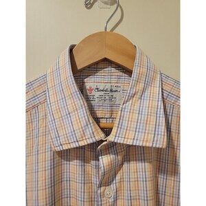 Turnbull & Asser Shirt Orange/Blue Plaid Long Sleeve Cotton Sz 17/43 Work Career
