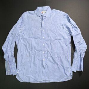 Turnbull & Asser Size 17-43 Button Down Long Sleeve Dress Shirt Blue Checkered