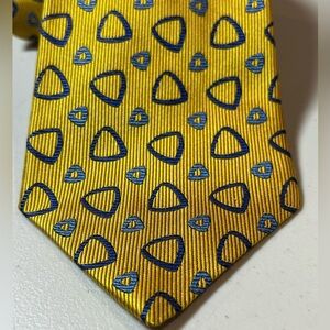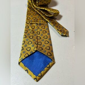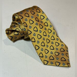 Turnbull & Asser Yellow Gold Geometric Tie Blue Pattern Savile Row London Silk