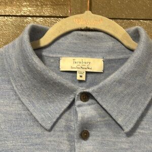 Turnbury 100% Extra Fine Merino wool light blue 1/4 button sweater size Medium