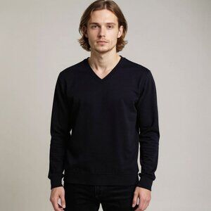 Turnbury Extra Fine Merino Wool Black V Neck Sweater Size Medium