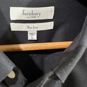 Turnbury men's black 100% cotton button-up shirt with long sleeves in size L is available.