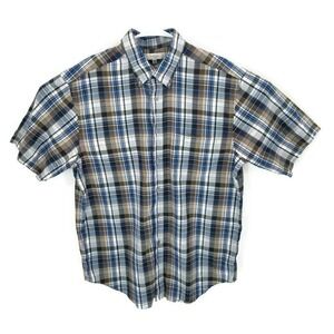 Turnbury Mens Oxford Shirt Multicolor Plaid Short Sleeve Button Down Collar L