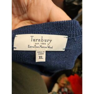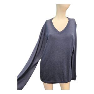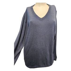 Turnbury Blue merino wool v neck sweater Womens size XL.