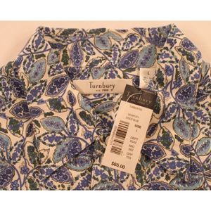 Turnbury Silkblend Blue Leaves Shirt L NWT $65.00