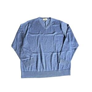 Turnbury Size Large 100% Extra Fine Merino Wool Men’s Blue V Neck Sweater #V7