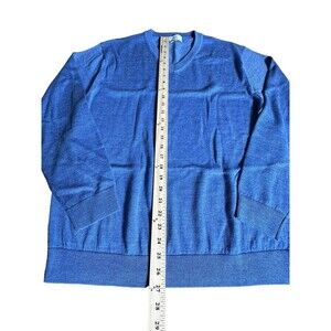 The sweater comes in a beautiful blue color and is a size L, perfect for regular-sized men. The sweater is a pullover style and is not vintage. It is made in China and is perfect for any occasion. Get this designer sweater now and add a touch of elegance to your wardrobe. Great never worn condition.