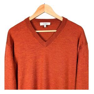 Turnbury Sweater Mens 100% Extra Fine Merino Wool V-Neck XXL Orange Barn Classic
