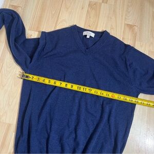 Turnbury Sweater Mens L Blue Extra Fine Merino Wool Classic V-Neck Long Sleeve