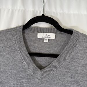 Turnbury Wool Sweater Men's Small Grey Vneck Extra Fine Merino Long Sleeve