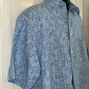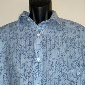 Turnbury light blue linen shirt with vertical pinstripes