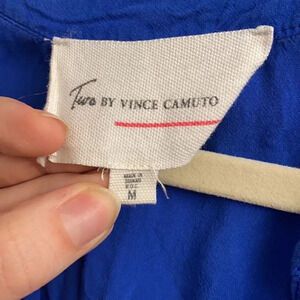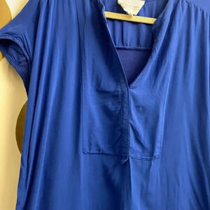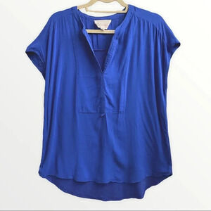 Turo By Vince Camuto Flow Bat Cap Sleeve Royal Blue Ribbed High Low Blouse M