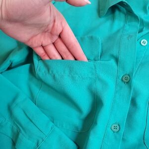 drapey and soft like silk with chest pockets. purchased at Urban Outfitters