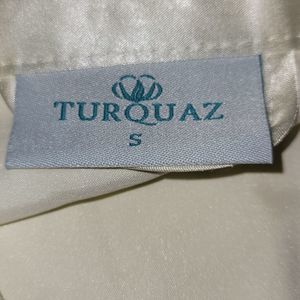Turquaz Women's Robe Size Small color ivory, tie/belt detail 95% polyester 5% spandex, pockets, excellent preowned condition (New1585)😊