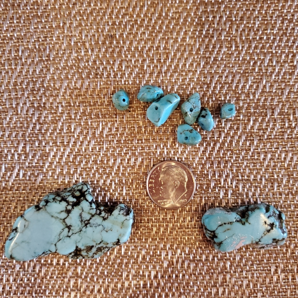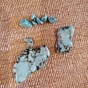 9 pieces of turquoise. Has predrilled holes for jewelry wire.