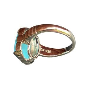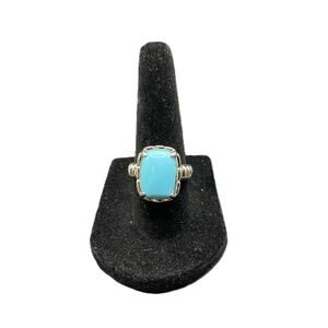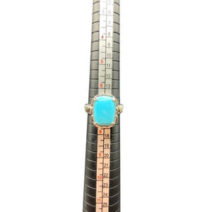 925 Sterling Silver Ring Turquoise Gemstone Prong Set Rectangle DK Size 7.5