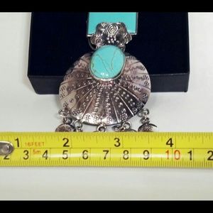 Extra Large Sterling Silver Turquoise Pendant W/ Dangles On Chain / HSN / New & Unworn / Marked 925 Thai