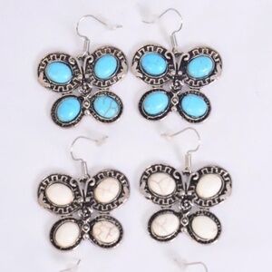 Turquoise Antiqued silver semiprecious stone butterfly earrings