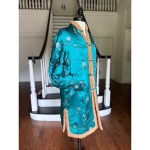 Stunning, RARE Colored Turquoise Vintage Silk Jacquard & Lined Chinese Coat/Jacket
