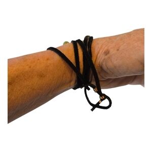 Black Suede wrap bracelet with wired turquoise stones, Swarovski crystals and rhinestone rondelles. Could also be worn as a necklace. No clasp, just tie. Excellent used condition.