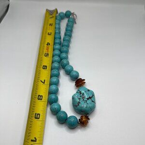 Turquoise Beaded Necklace Amber Accents & Toggle Clasp