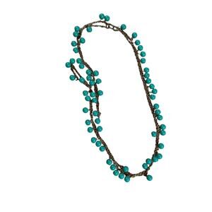 Turquoise Beaded Necklace Southwest Western Jewelry Gold Tone 24" Chain Vintage