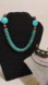 Turquoise necklace and bracelet set with round and flat beads, accented with antique gold details. Elegant, artisan-inspired design that adds a unique touch to any look.