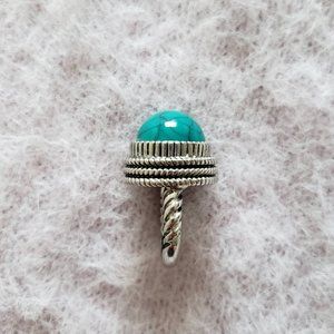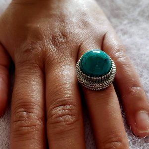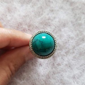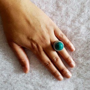 Features: bold and bright Turquoise Green, boho hippie style, band and mount setting color is silver tone, vintage style