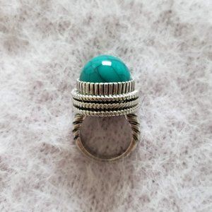 Turquoise Bezel Fashion Ring Silver Tone Size 7