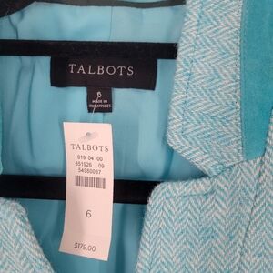 Turquoise Bicolor Herringbone Classic Shetland Blazer Size 6 New