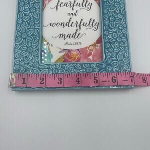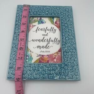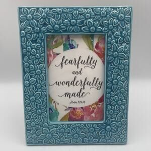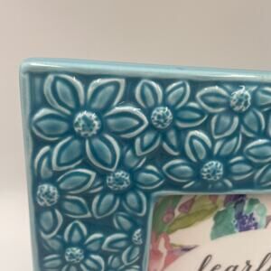 Turquoise/Blue floral ceramic picture frame.